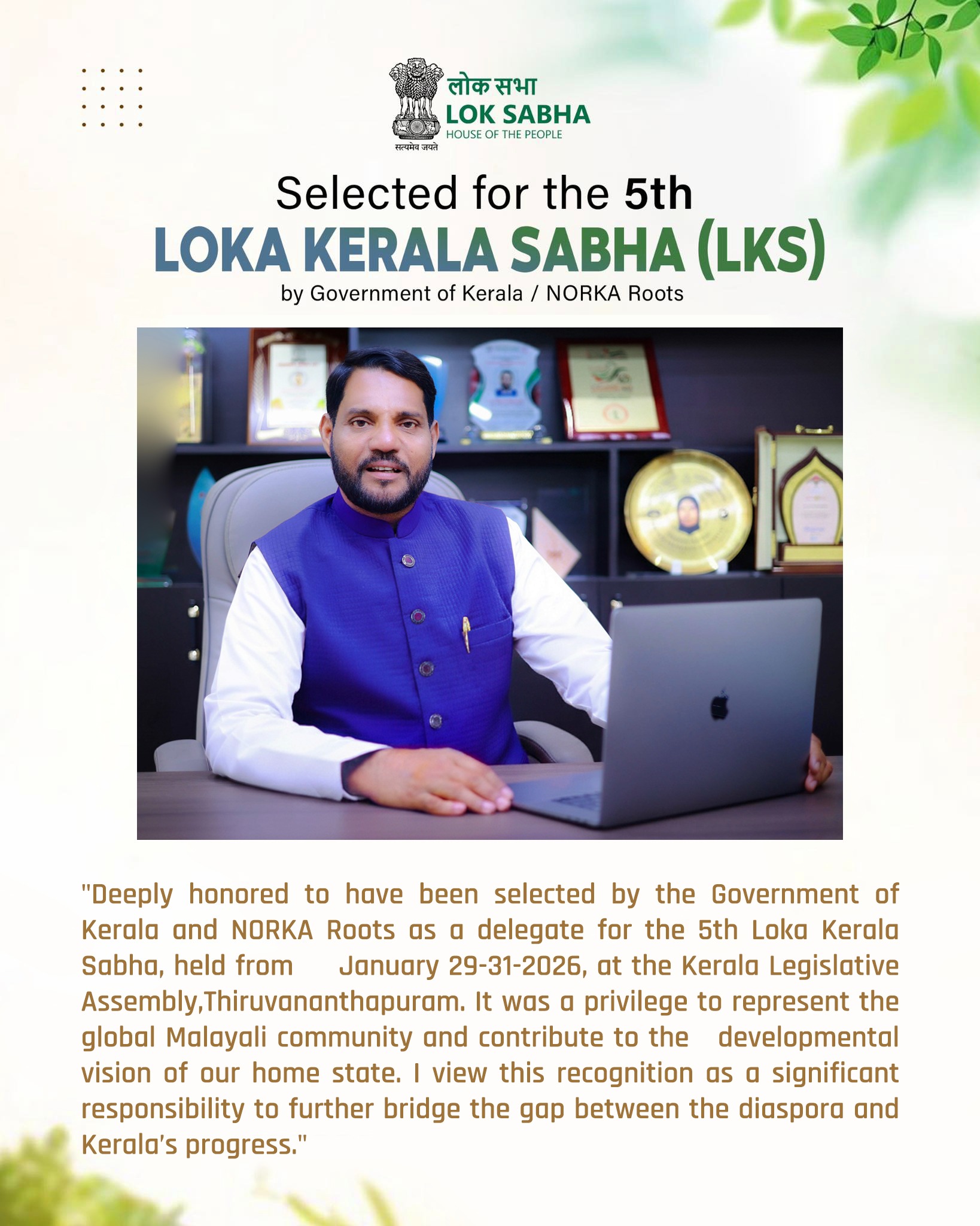 കണ്ണൂര് പാപ്പിനിശ്ശേരി സ്വദേശിയായ അദ്ദേഹം ഗ്ലോബല് പ്രവാസി അസോസിയേഷന് (GPA) ചെയര്മാന് കൂടിയാണ്. നിയമക്കുരുക്കില് അകപ്പെടുന്നവര്ക്കും ജയിലില് കഴിയുന്നവര്ക്കും സഹായമെത്തിക്കുന്നതില് അദ്ദേഹം സജീവമായ സാന്നിധ്യമാണ്. ലോക കേരള സഭാംഗമെന്ന നിലയിലുള്ള തന്റെ മുന്പരിചയം പ്രവാസികളുടെ നീറുന്ന പ്രശ്നങ്ങള് കേരള സര്ക്കാരിന് മുന്നില് കൂടുതല് ഫലപ്രദമായി അവതരിപ്പിക്കാനും അവര്ക്ക് അര്ഹമായ അവകാശങ്ങള് നേടിയെടുക്കാനും സഹായകമാകും.